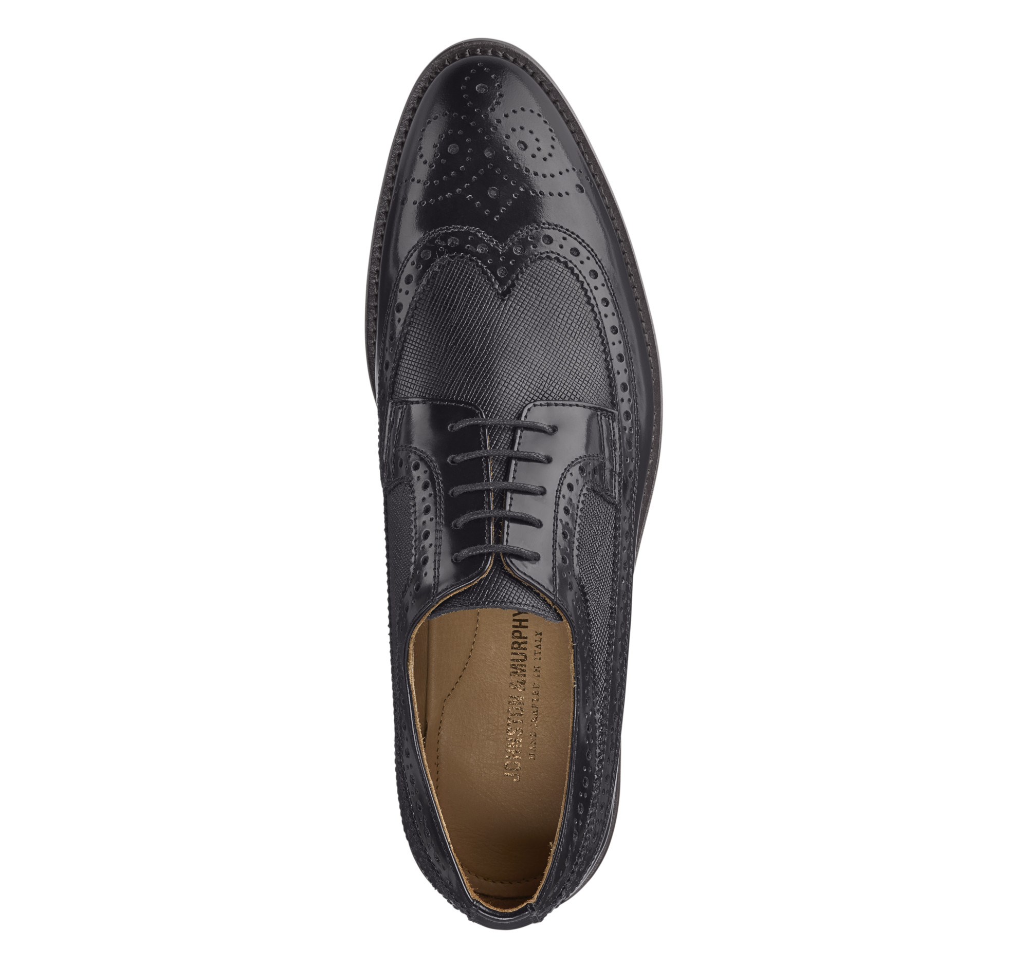 • A rich interplay of high-luster brush-off and pebble-textured calfskin.