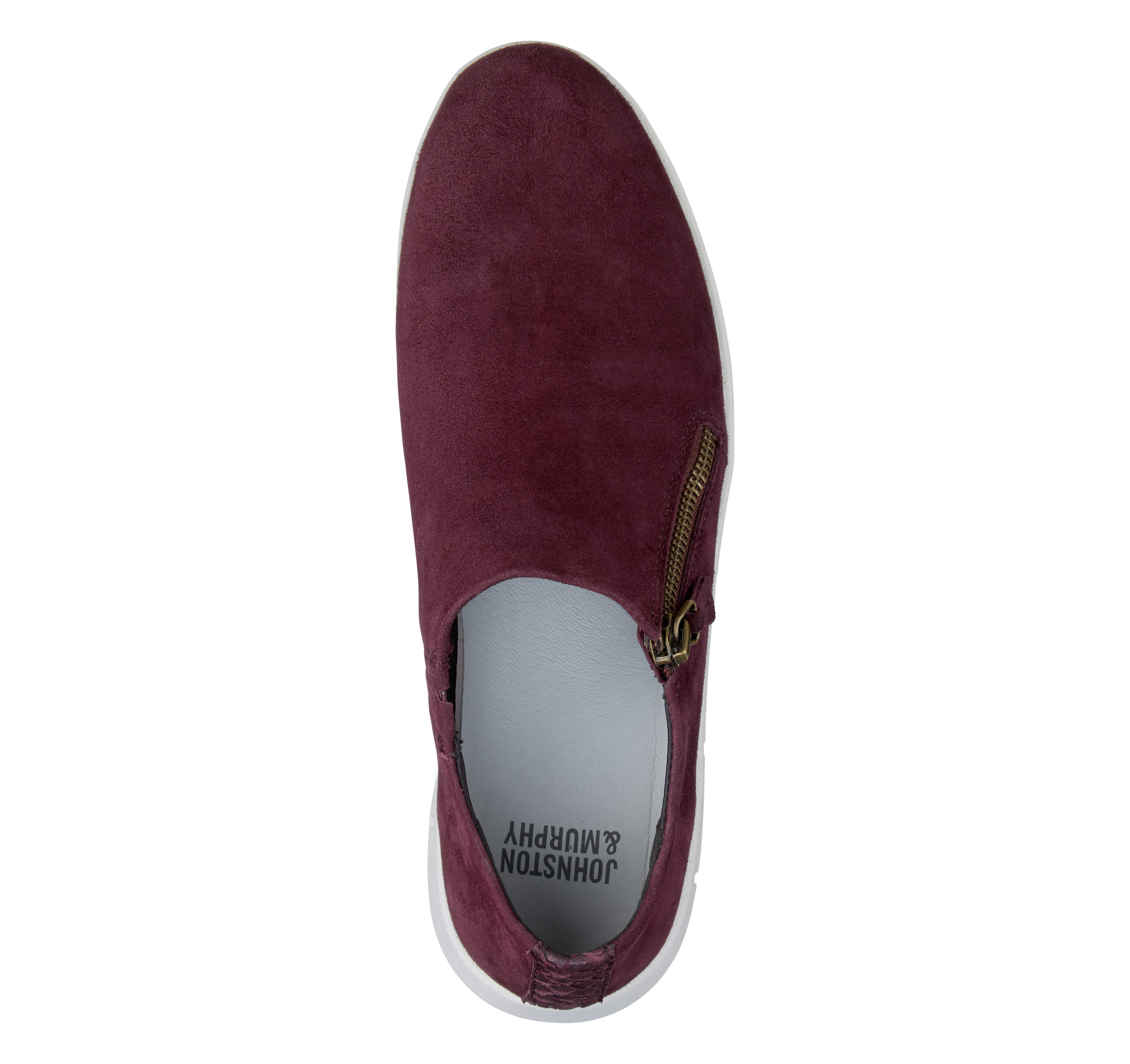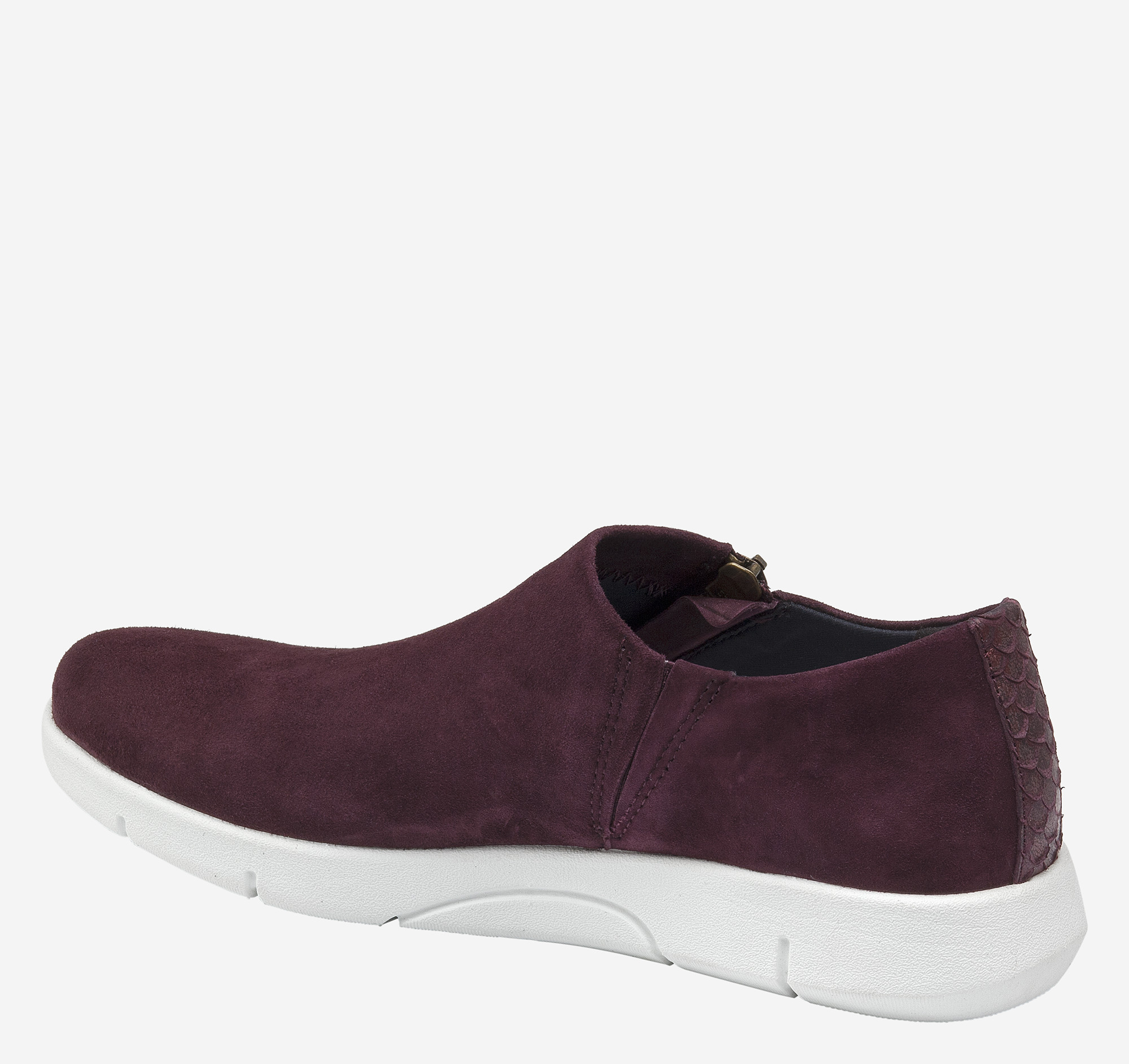 - Side-zip sneaker crafted of rich Italian kid suede.